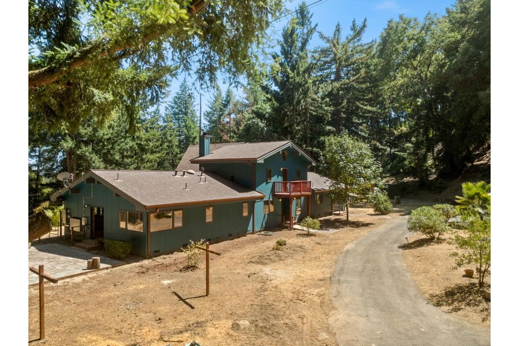 Large Tahoe-Inspired Home on 4 Acres, with Mountain and Valley Views, tucked into a desirable enclave in the Los Gatos Hills with tree-lined views out to Mount Ummanhum and across Silicon Valley, amidst gently sloped front, side and rear yard areas with fruit trees and ample room for a small arena, a barn, a sport court, a pool plus multiple sites for outbuildings, tents or whatever! Start each day in the grand primary suite with its walk-in closet and oversized tub with jets for a stay-at-home spa experience. The kitchen is a culinary enthusiast's delight, equipped with twin granite peninsulas, a gas cook top, a combo oven with convection, and a warming drawer. Treat your guests to atrium dining under the sun by day and the stars by night. Soaring open beam ceilings and walls of glass impart a spacious feel throughout, made warm with rich wood accents. Enjoy the wood stove and fireplace, plus brand new Energy Star HVAC, backed by solar power and double pane windows to maximize your comfort year round while keeping your utility bills at a minimum. The separate family room with cathedral windows is the perfect vantage point to enjoy the view, or you can ascend the open staircase up to the giant loft area for recreation and entertainment. This is the one you've been waiting for!