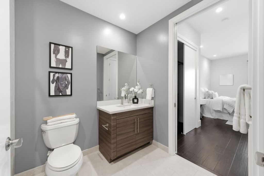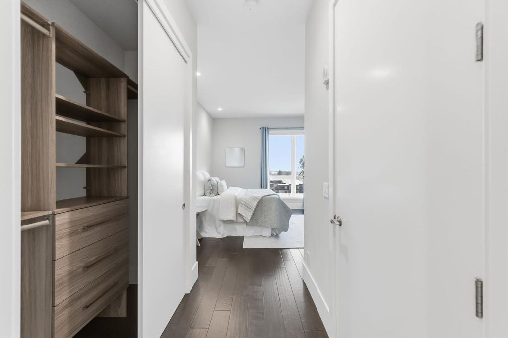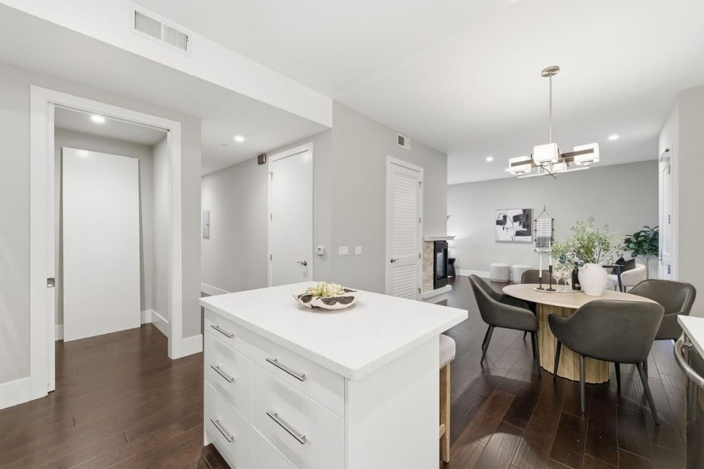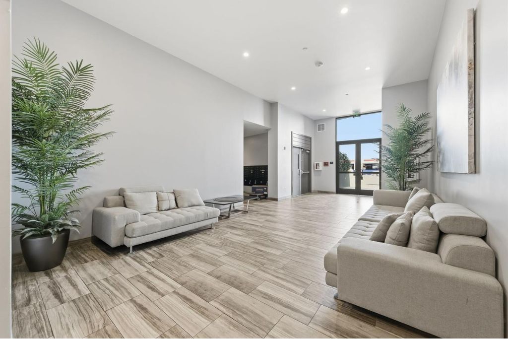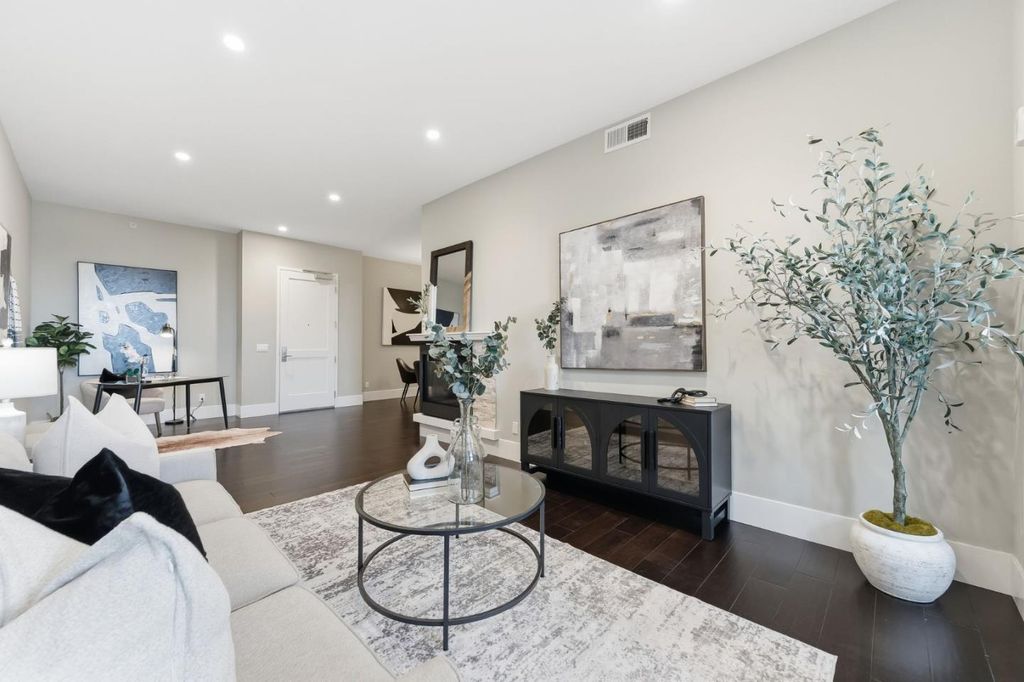 Rarely available oversized 2-bdrm condo, larger than many 3 bdrm units in building. This beautifully updated top-floor residence offers an expansive living area w/ ample room for a dedicated home office, thoughtfully set apart from the main entertaining spaces. Set in a newer, meticulously maintained building, this home blends comfort, style, & convenience. Soaring ceilings & abundant natural light enhance the open-concept layout, ideal for both everyday living & entertaining. The gourmet kitchen is a chef's dream, featuring stainless appliances, quartz countertops, & custom cabinetry. The spacious living area flows seamlessly to a private patio, perfect for relaxing or dining al fresco. The generous primary suite includes a nicely finished walk-in closet & spa-inspired bath. The 2nd bdrm (en-suite) offers flexibility for guests, a home office, or family needs. Additional highlights include in-unit walk-in laundry room, a large storage area off the kitchen, central A/C, 2 assigned parking spaces, a public EV charger, & low HOA dues. Residents also enjoy a communal BBQ area, ideal for casual gatherings and entertaining. Ideally located in desirable Belmont, close to top-rated schools (buyer to verify), Caltrain, major commuter routes/tech shuttles, & vibrant shopping and dining.