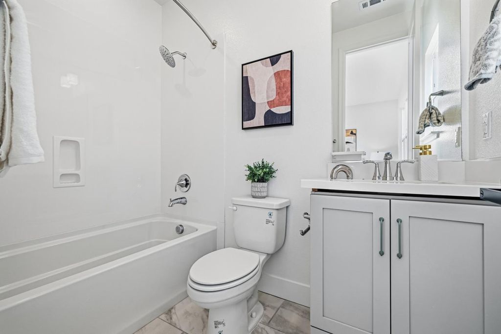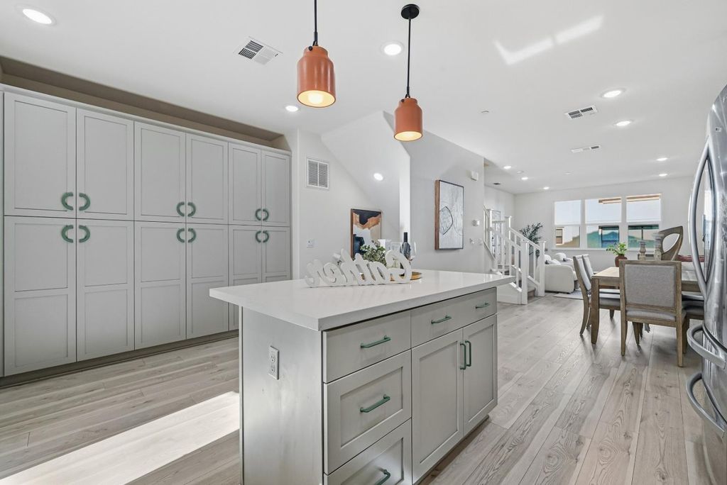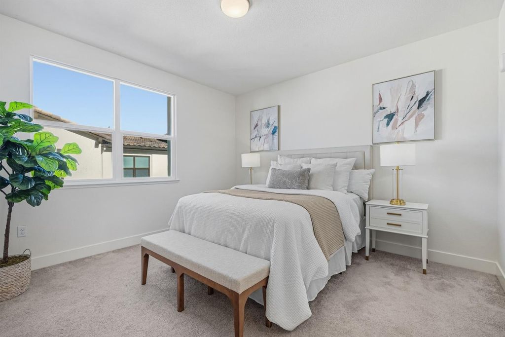 Discover upgraded modern luxury in this 2022-built, like-new contemporary townhome in Sunnyvale's vibrant Elev8tion community! Spanning 3 beautiful levels, this move-in ready home features 3b3.5b across 1,718 sqft., including a private first-level bedroom suite ideal for guests or rental. The heart of the home is a stunning open-concept great room with soaring high ceilings, combining a chef's dream kitchen with top-of-the-line appliances,& a spacious living and dining area bathed in natural light, opening to a charming covered deck. Upstairs, two luxurious bedroom suites include a serene primary retreat with bath and walk-in closet. Modern comfort is elevated with premium features, including a water filtration system, 3-zone HVAC, fresh air ventilation. The Elev8tion community enhances your lifestyle with shared amenities including a clubhouse and playground. Popular with Silicon Valley professionals, it is just minutes from restaurants, shops, Downtown Sunnyvale, and major tech employers including Apple, Google, Meta, Nvidia, Amazon & more, with easy access to Highways 101, 237, and Central Expressway. This townhome is not just a house, but a lifestyle statement in a thriving community. Don't miss this Sunnyvale beauty!