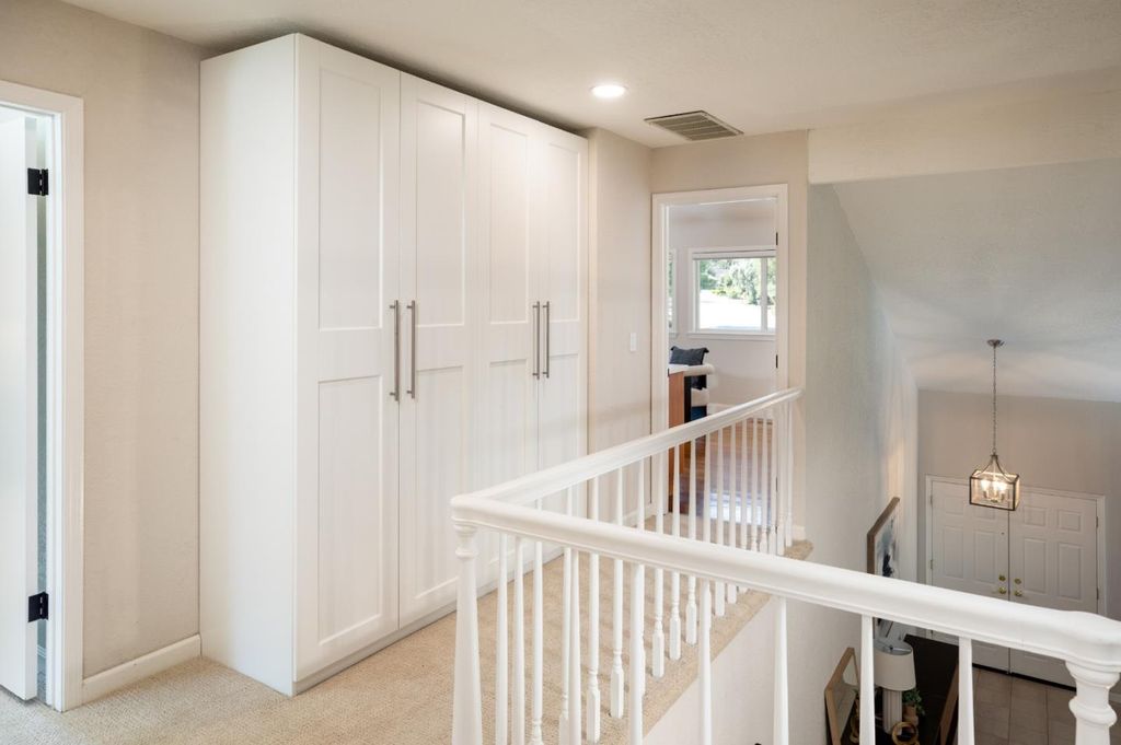 Beautiful home nestled on a quiet cul-de-sac in the highly sought-after Almaden Valley with top rated schools. Surrounded by picturesque foothills and an exceptional neighborhood setting. This spacious property offers an open and functional floor plan with five bedrooms, updated bathrooms, and an expansive upstairs bonus room ideal for a playroom, home office, or media space. The home features a formal living room, separate family room, and dedicated dining area, along with two sliding doors that create seamless indoor-outdoor living, one leading from the dining room to a large deck, and another from the family room to a patio. The spacious kitchen is well-appointed with granite countertops, a large island, a gas range, a double oven, and a breakfast nook. A ground-floor bedroom and full bathroom provide flexibility for guests or multi-generational living. Upstairs, the primary suite offers high ceilings, generous closet space, and a beautifully remodeled bathroom. Step outside to a large backyard with multiple fruit trees. The expansive lot offers ample room for a pool, accessory dwelling unit (ADU), or both. Other features include: whole-house water filter, water softener, and more! Easy access to shopping, major commute routes, outdoor recreation, and local farmers' markets.